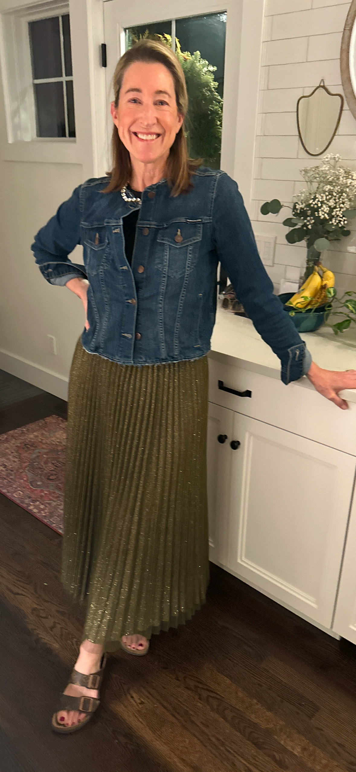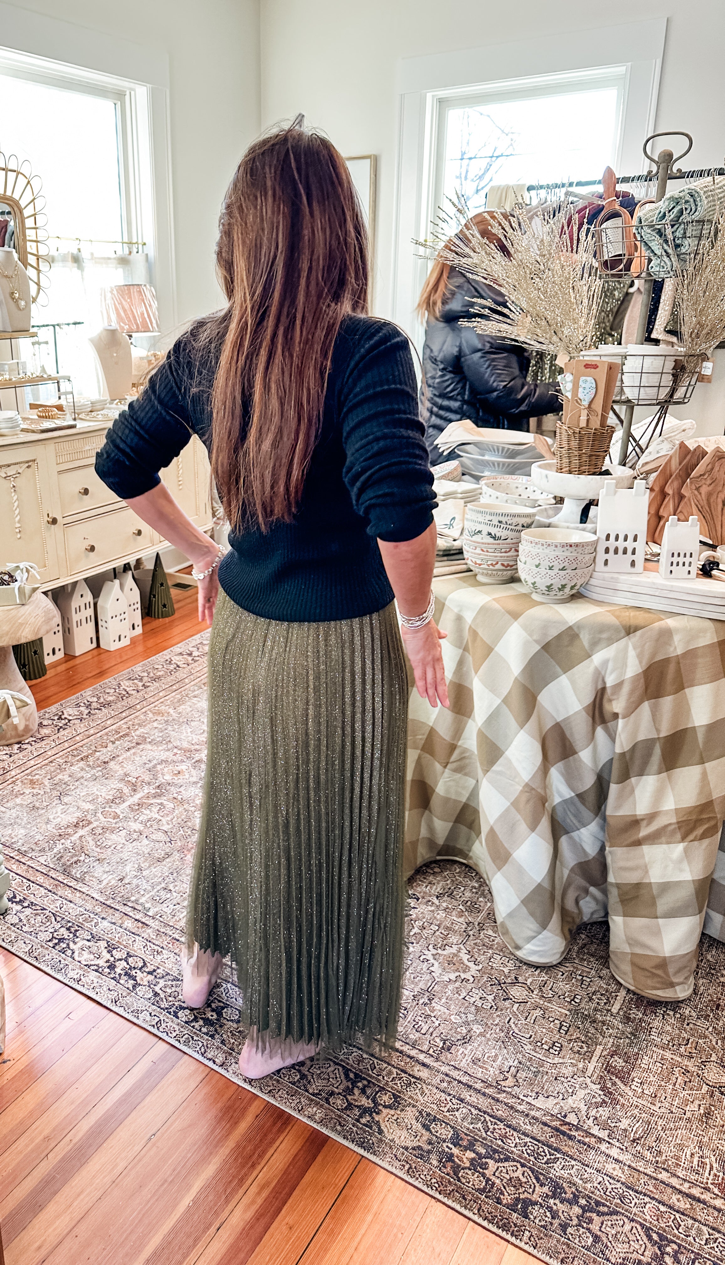 Shimmering pleats cascade down this flowy silhouette of this lovely sparkle skirt.  Two layers, top layer is tulle with sparkles and under layer is solid. Elastic waist makes it easy to wear!  Dress up or down.