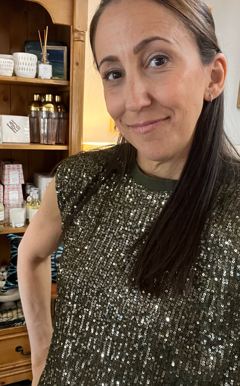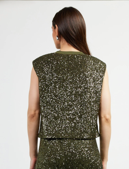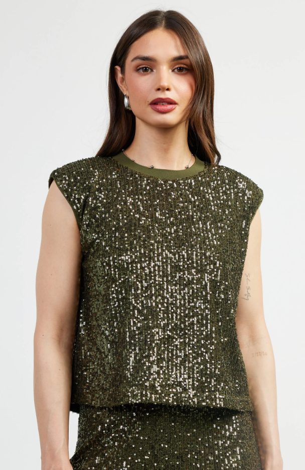 Sequin top -Olive