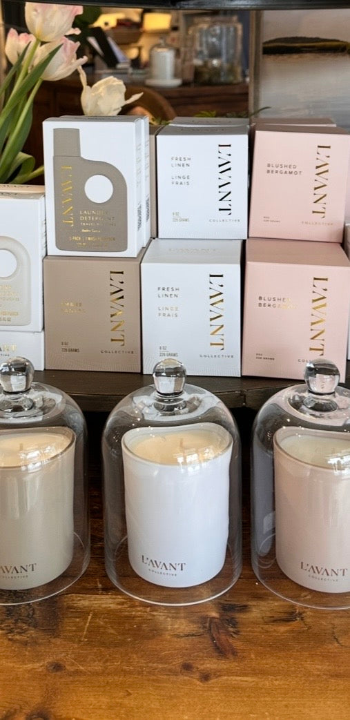 L'Avant scented candles are made from a soy and coconut blend, + they are free of paraffins, phthalates, and parabens.
