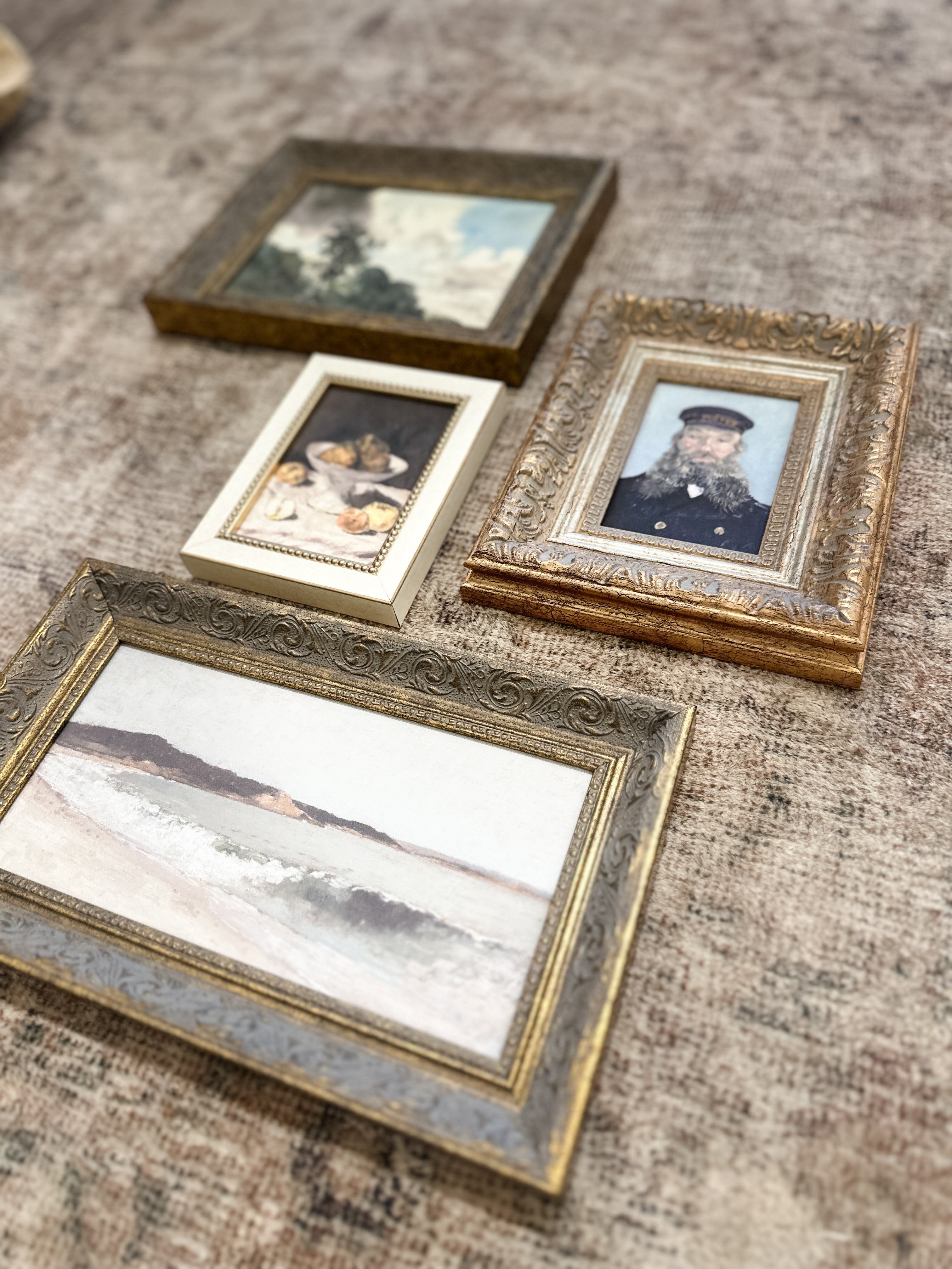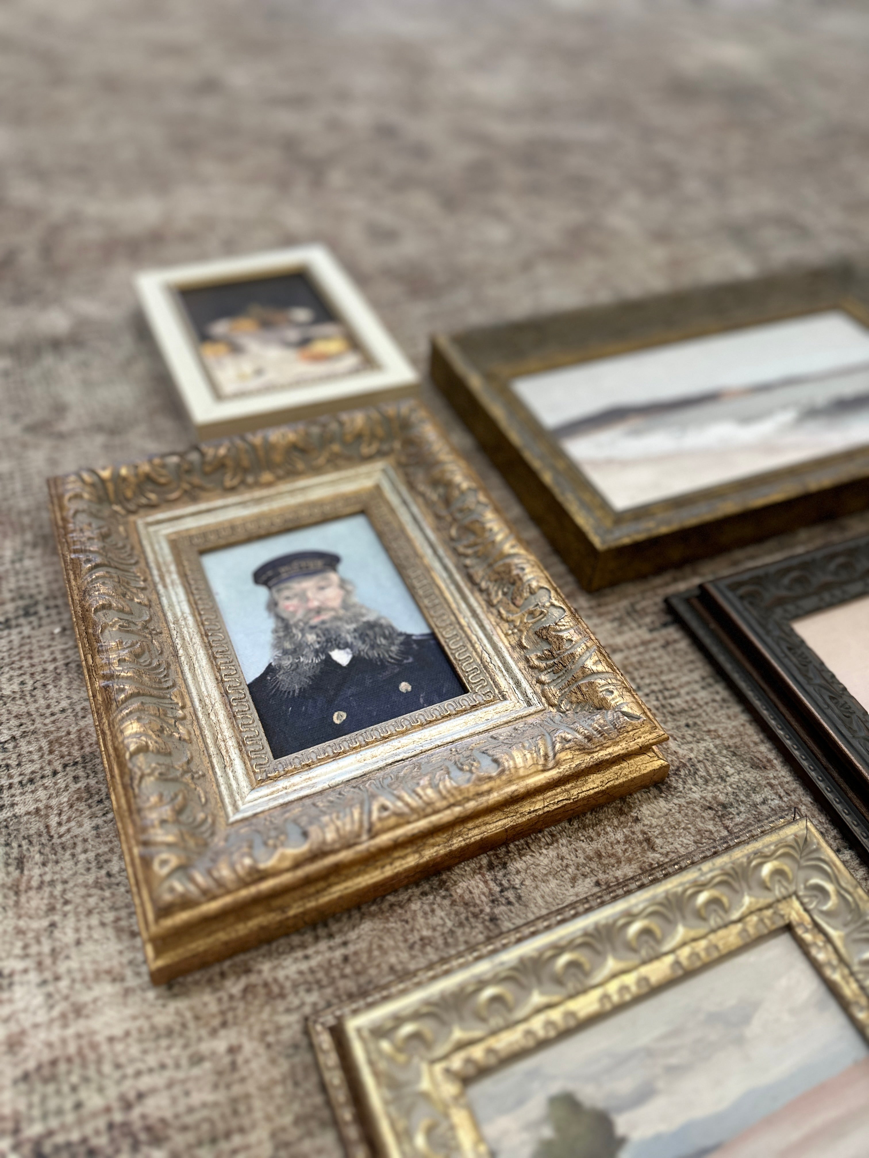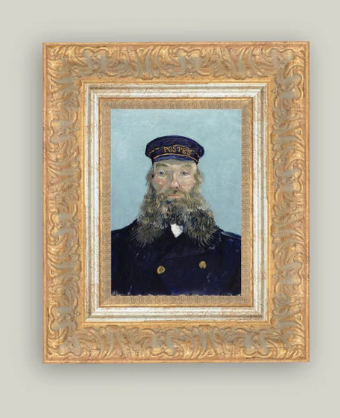 This vintage-inspired print is titled, Portrait Of The Postman.  The chunky, carved gold painted frame adds the the charm of this piece.  Add this to a small wall space or mix it with other pieces for a beautiful gallery wall.