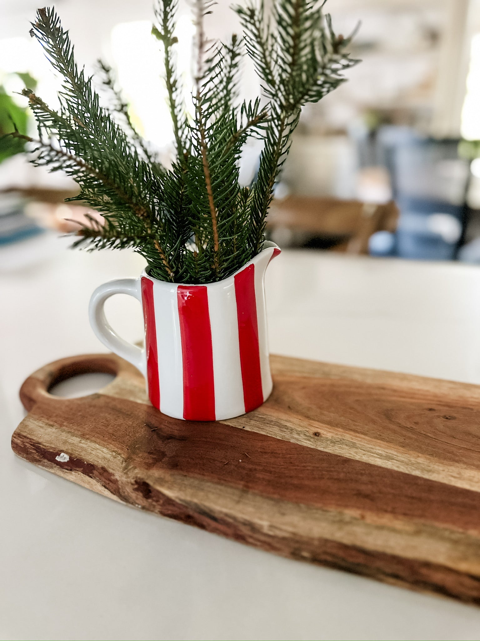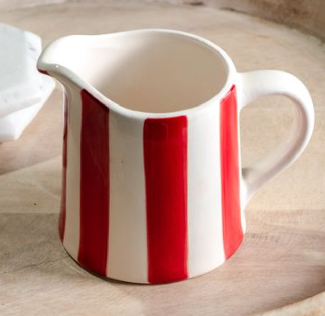 Add a touch of holiday cheer to your table with this red and white striped pitcher. Perfect for serving cream with Christmas morning coffee or holding a few festive sprigs of greenery.