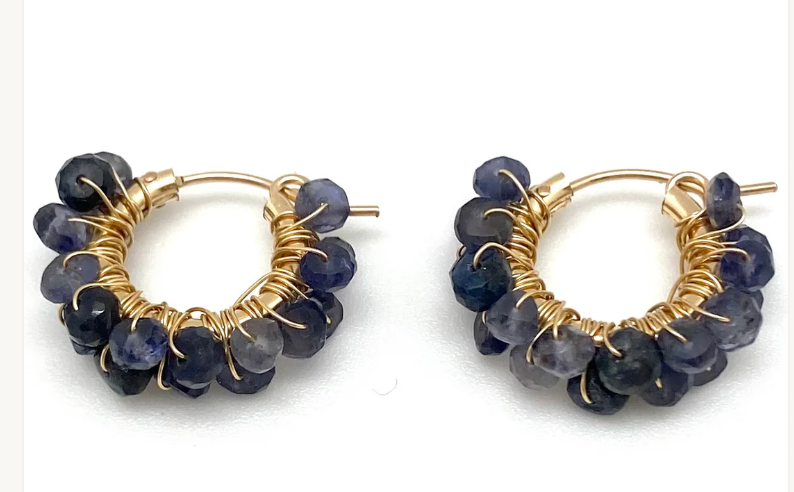 Each piece from the IN2 Design collection is made by hand. This Diddi Hoop continues to be a BEST-SELLER. Tiny sapphire stones are wrapped with gold-fill.