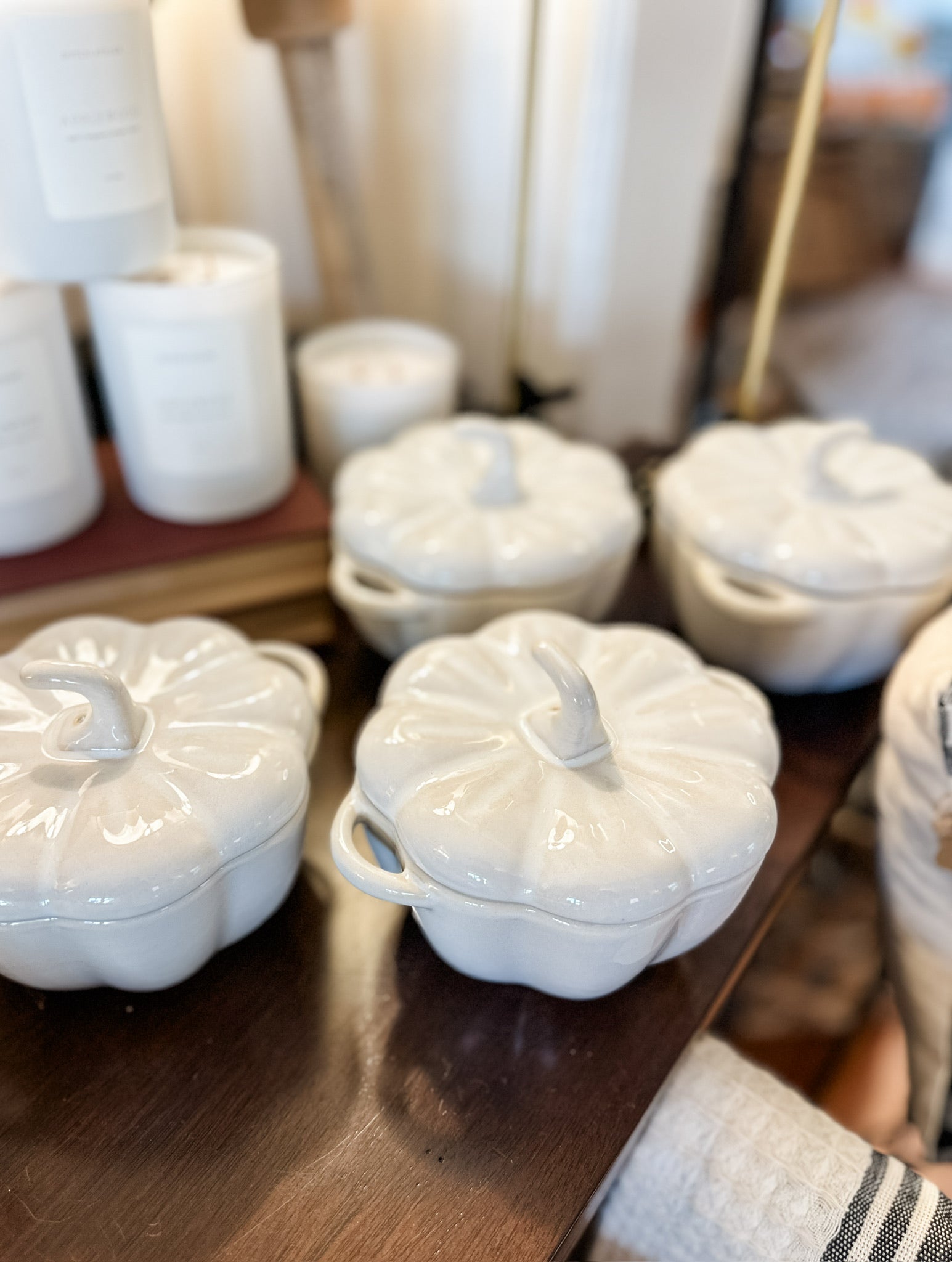 This adorable pumpkin-shaped stoneware baker holds 2 cups and features convenient handles for easy serving. A cozy addition to your kitchen and a thoughtful gift for holiday hosts.
