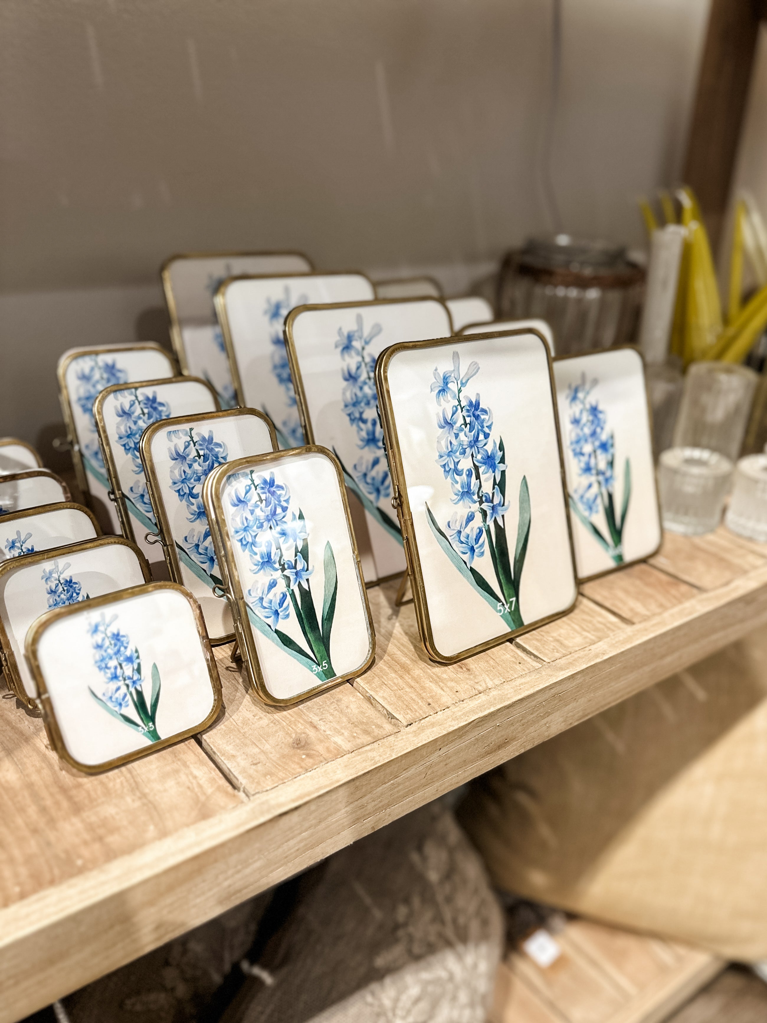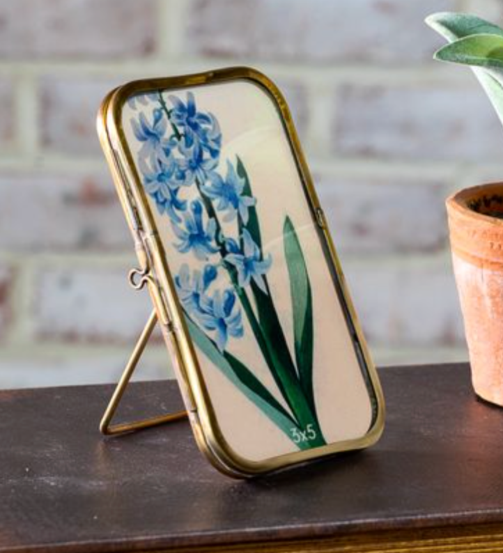 We love this sweet collection of vintage-inspired brass trimmed frames. Layer a couple sizes or add just one to your bookshelf or night table. The side, slide pin opens the glass-fronted frame and allows for easy insert of our favorite memory or piece of small art.