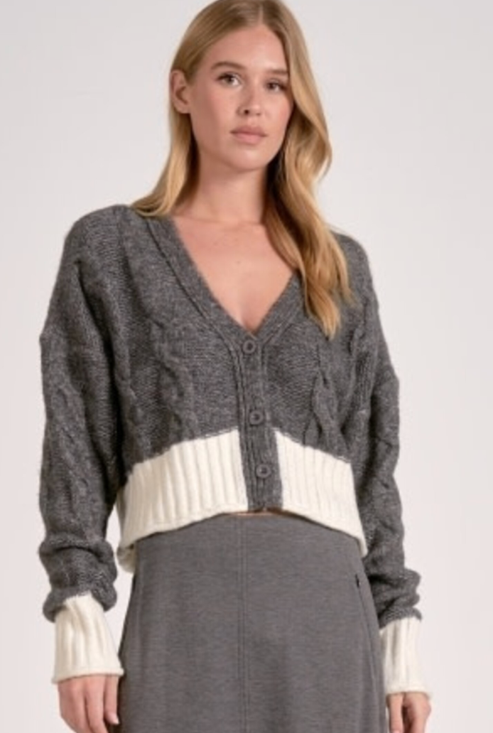 This relaxed style is slightly cropped for a fit that will hit at the waistline. Subtle cable pattern adds interest and the knit is super cozy!