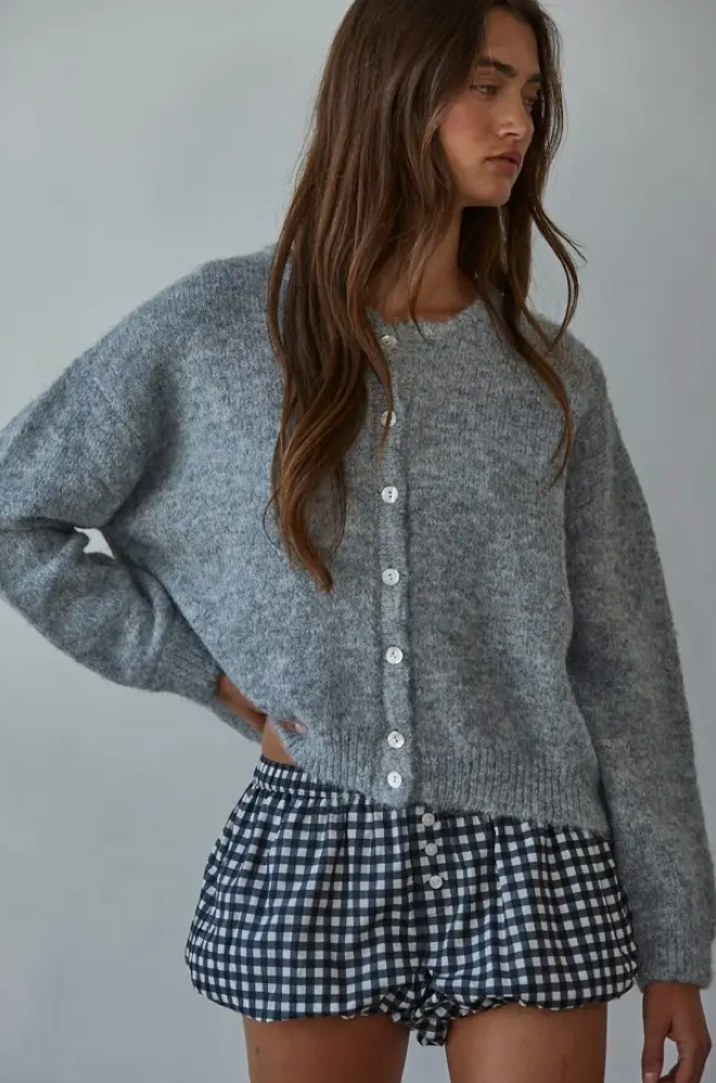 A timeless essential, this knit sweater cardigan features a round neck, buttondown front, and long sleeves. Made with recycled fibers for an eco-friendly touch, it layers effortlessly from weekday to weekend.