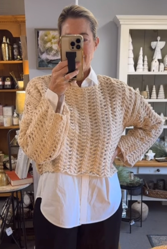 Love this Knit Pullover Sweater! Made from ultra-loose knit material, this semi-cropped sweater features a scoop neck and long sleeves. it can be styled with a tank top or layered over a dress. The neutral oatmeal color pairs perfectly with any outfit. Try pairing it with wide leg jeans or a maxi dress for a trendy look. Stay cozy and stylish with this chunky knit sweater!