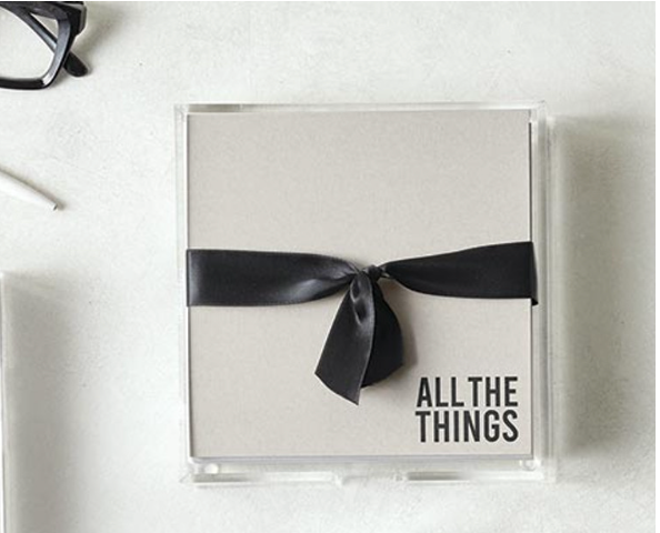 Jot down all the things with this loose notepad set in a sleek acrylic holder. Perfect for keeping lists, notes, and daily reminders right where you need them, stylish, simple, and super handy.