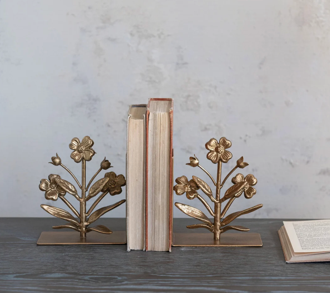 These bookends are not just for the book lover but for anyone looking to showcase their collection in style. The substantial weight of the cast iron ensures your favorite reads are securely held in place, while the charming design elevates your space with a touch of botanical artistry.