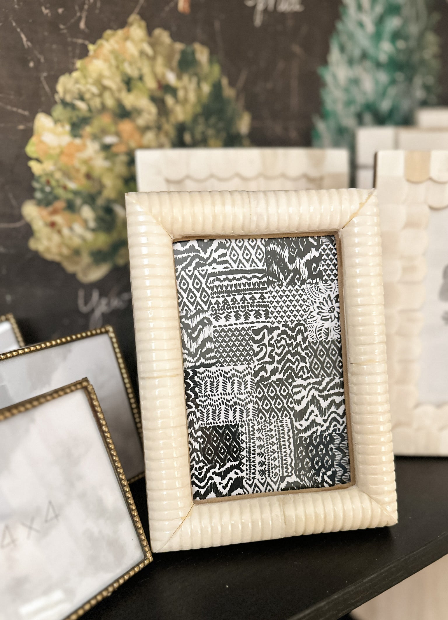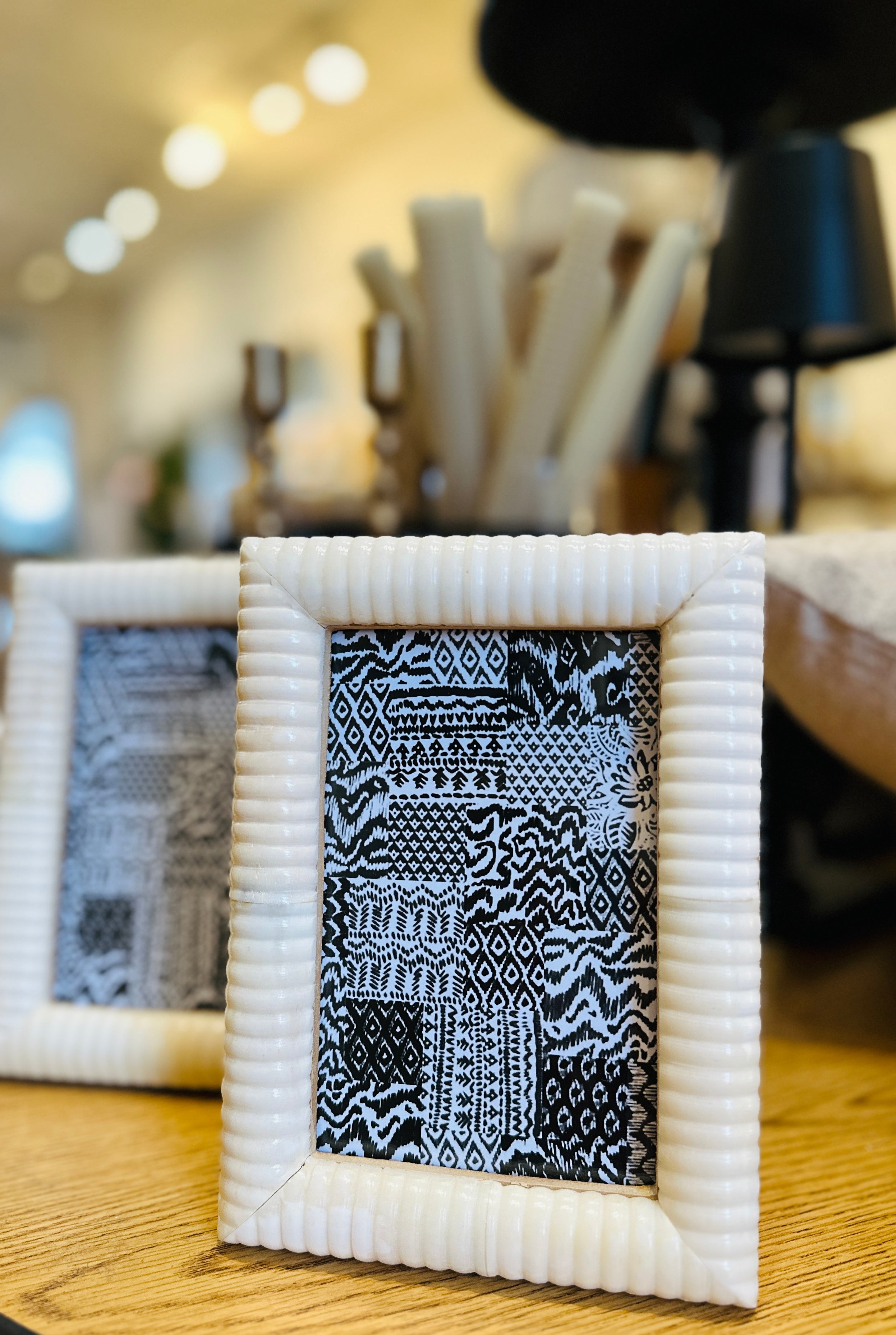This photo frame is perfect for displaying your favorite memories. Hand-carved, this bone and MDF frame features a beautiful natural finish that matches with any decor styles. Looks great placed on shelves, side tables and dressers for an easy decoration