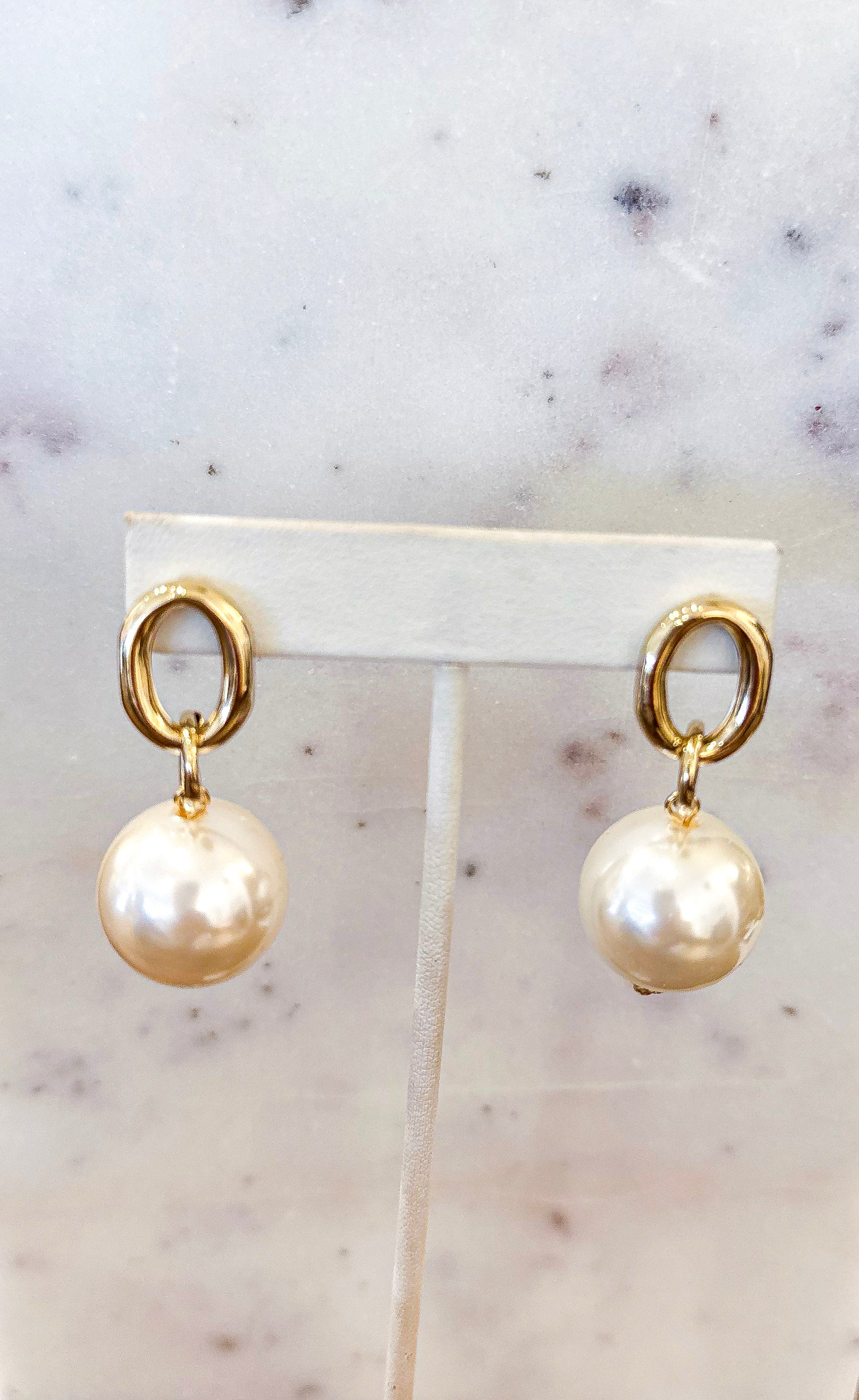 Featuring a sleek gold-toned oval design paired with luminous pearls, these earrings add a touch of modern sophistication to any outfit. The graceful dangle creates eye-catching movement, making them perfect for both everyday wear and special occasions.