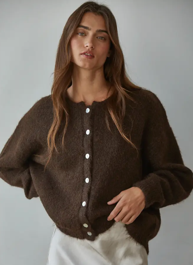 We are loving this oversized COZY cardigan! It's angora-like knit makes it incredibly soft and we believe this piece is the one you will grab for on repeat with cool temps. Layer over a tank or tee, even a button down. Pair it with a silk scarf to dress it up or with jeans for a relaxed, comfortable look.