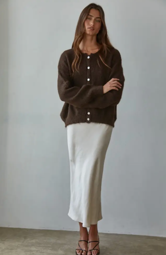 Knit Long Sleeve Cardigan - dark chocolate