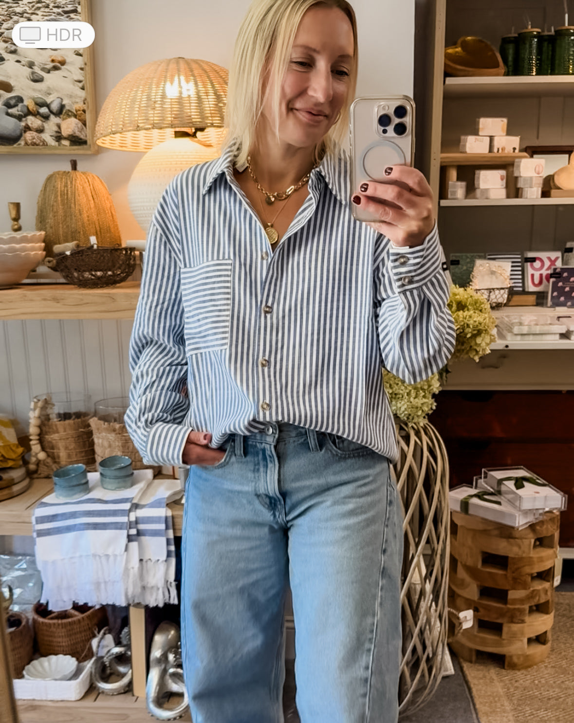 This Button Down is a wardrobe essential in a timeless striped pattern.