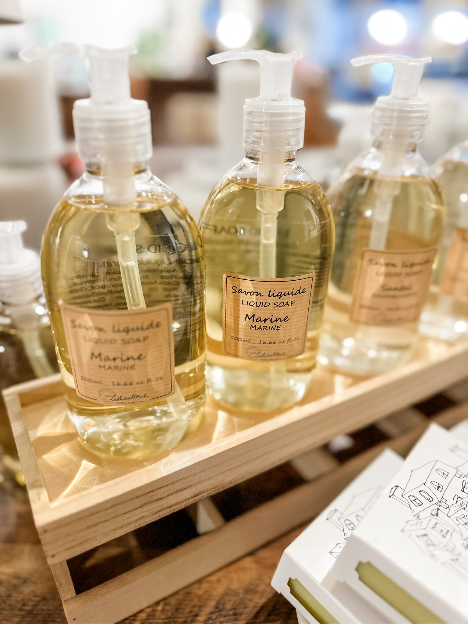 Crafted in France, these Marseille-style liquid hand soaps are vegetable-based and designed for everyday luxury. Their mild yet effective formula gently cleanses while keeping hands soft and nourished. Perfect for use in the kitchen or bathroom, these timeless soaps bring a touch of French elegance to your home.