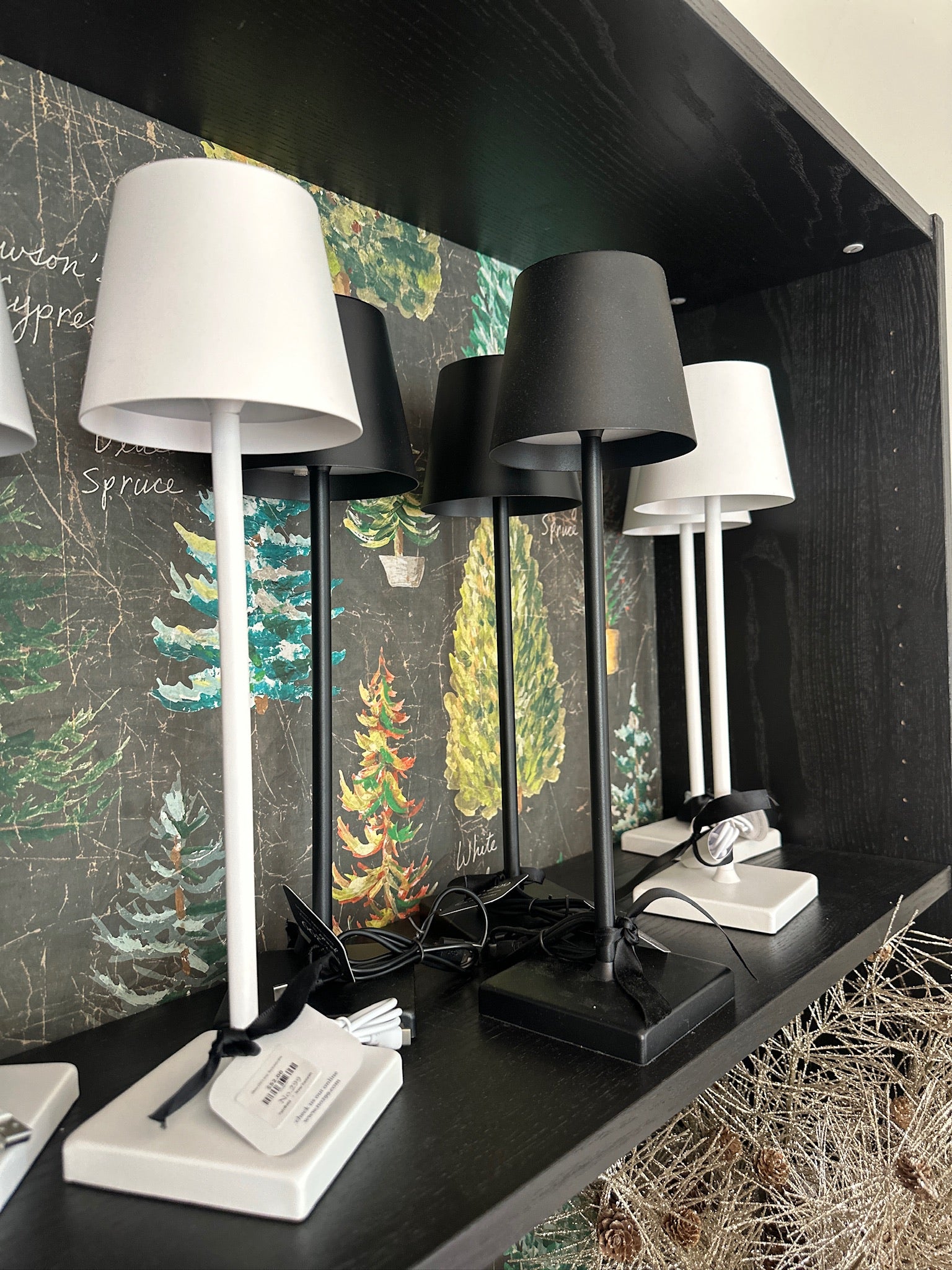 This lamp is lightweight and portable and features long-lasting LED light and a rechargeable battery. Use indoors or carry outside for al fresco dining. This lamp is dimmable and offers three different light modes.