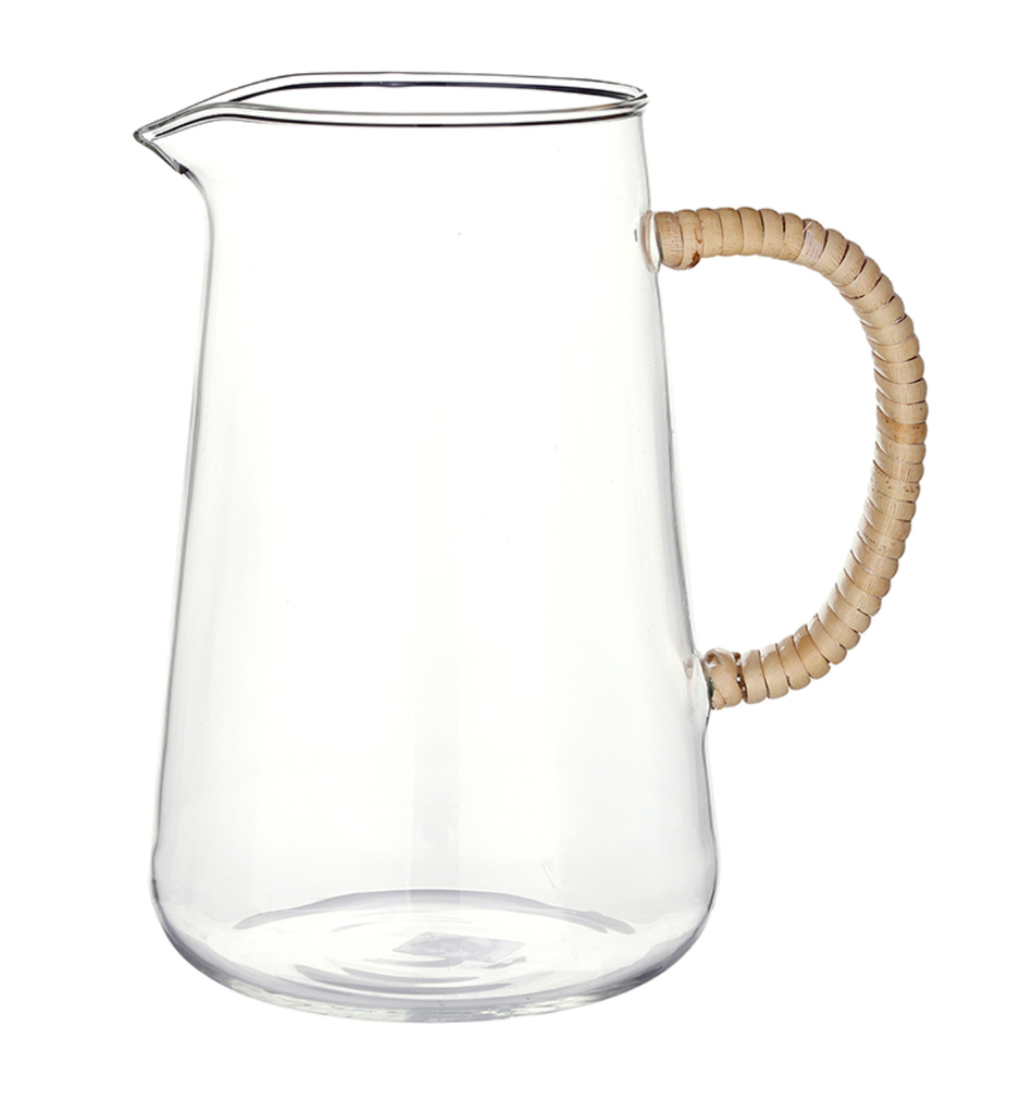 Natural wraps on pitchers make festive pieces for indoor and outdoor drinking and dining.