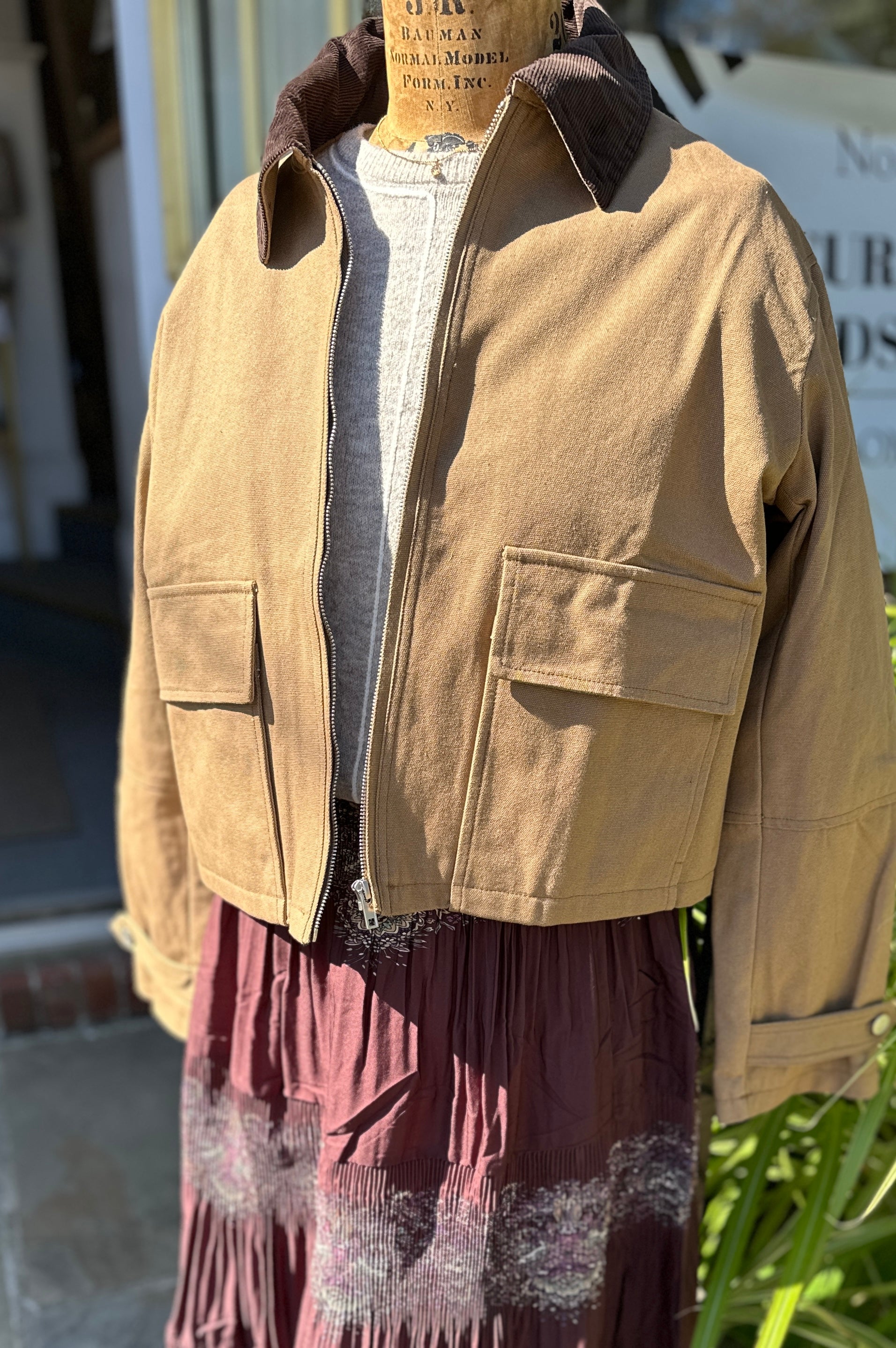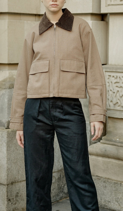 The forge Jacket is a our modern barn jacket blends rugged utility with contemporary style. Crafted for comfort and effortless layering across seasons. Work-style zip-up jacket with a contrast corduroy collar, front flap pockets, and an adjustable button-back hem and sleeve cuffs for added utility. Slightly cropped for a fit that sits right at the waist.