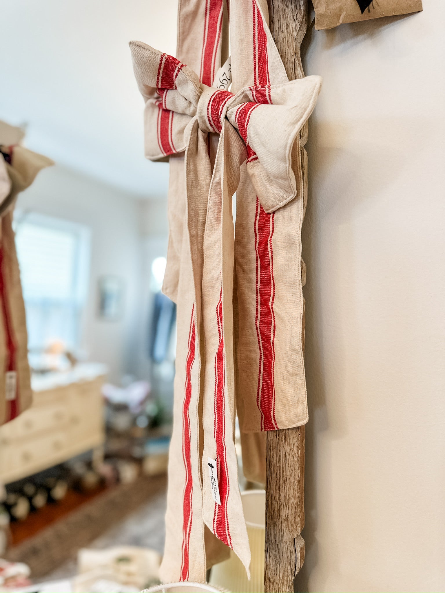 Meet the bow that brings instant holiday charm! This woven cotton beauty features natural and red stripes and a clip-on design that makes decorating effortless. At 21" x 10", it’s the perfect festive finishing touch for wreaths, garlands, banisters, or tree branches.