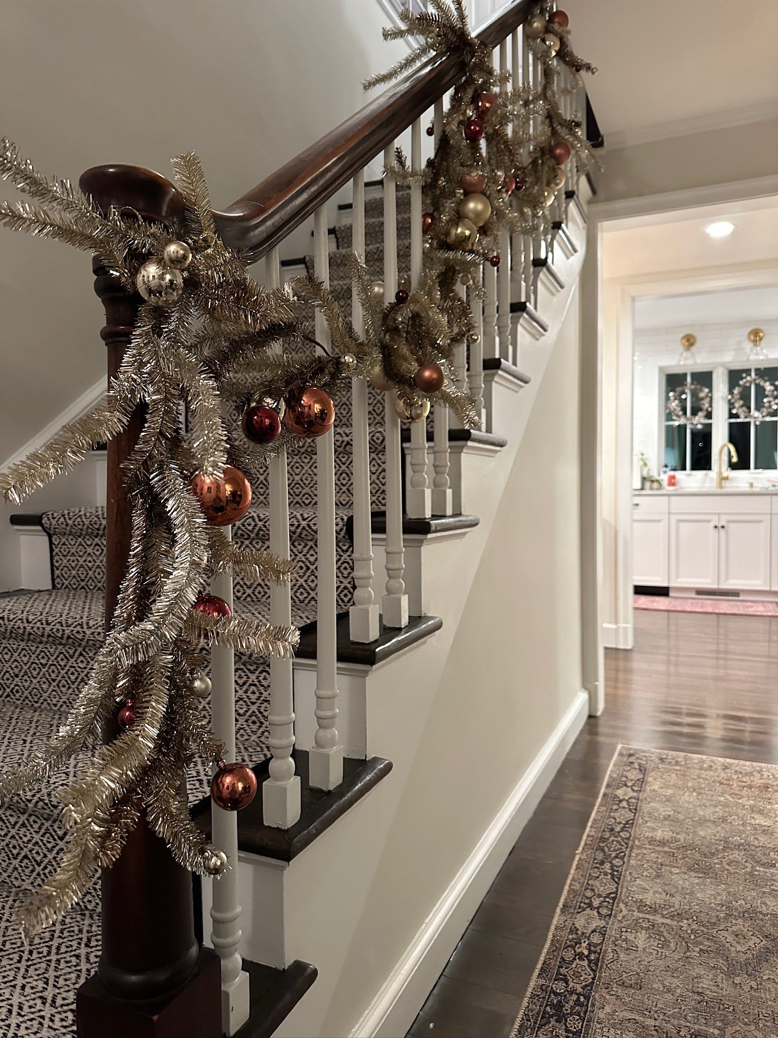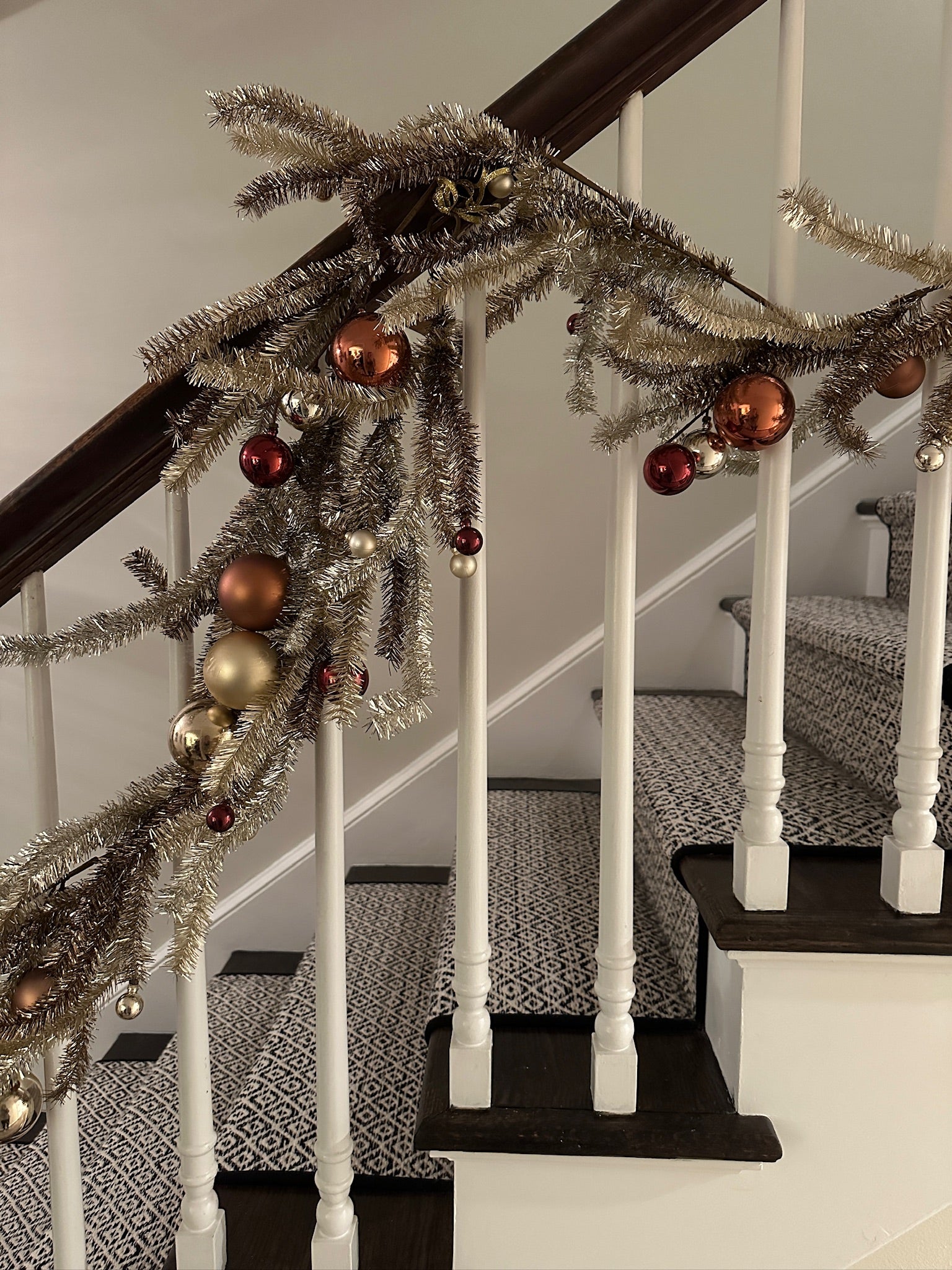 Bring the magic of the season home with this Tinsel Garland with Ornaments. Shimmering strands and bright baubles create a joyful, eye-catching accent, perfect for wrapping banisters, framing doorways, or adding a pop of holiday sparkle to your tree.